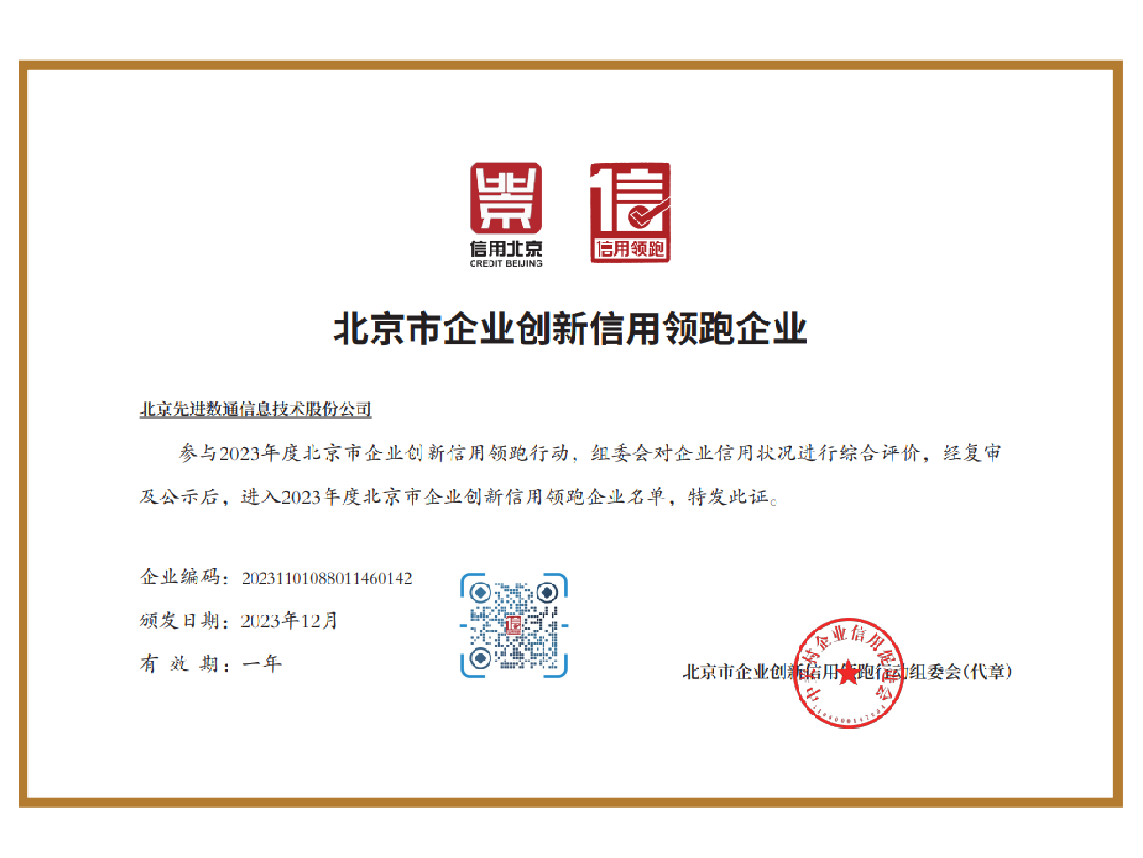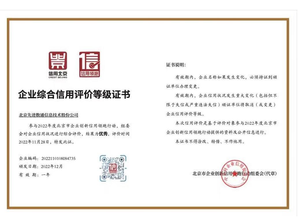 • 北京市企业立异信用领跑企业