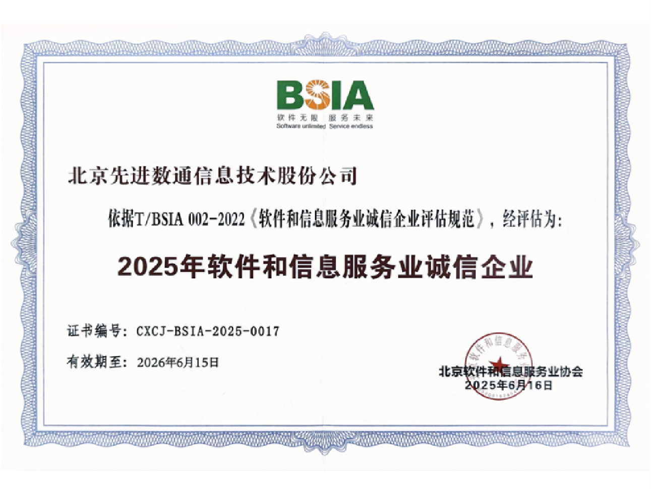 • 软件和信息服务业诚信企业