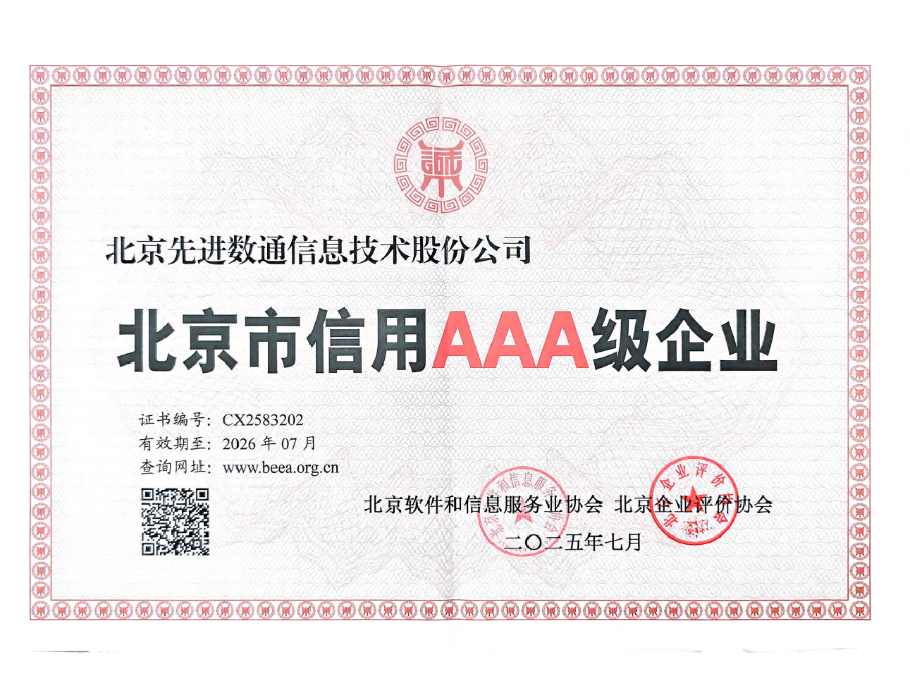 • 北京市信用AAA级企业