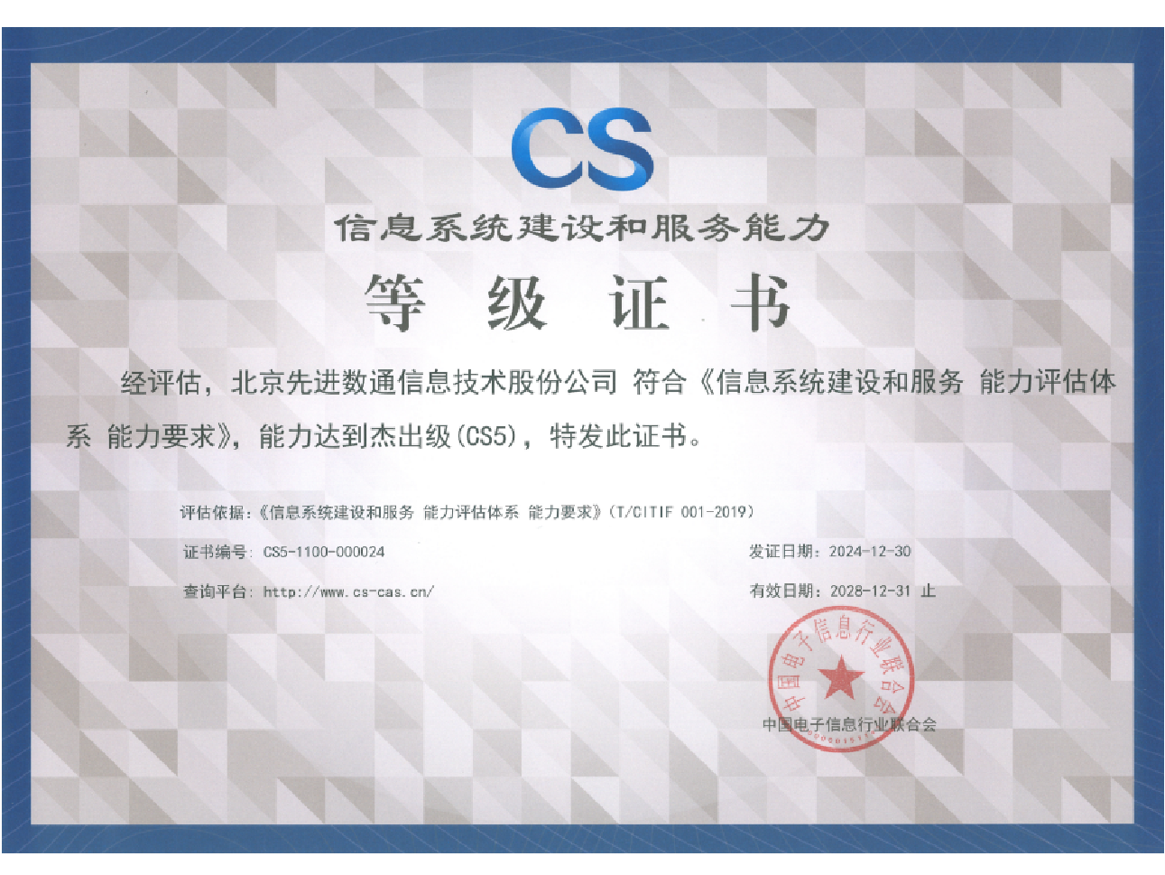 先进ggpoker官网先后获得CMMIL5、软件能力成熟度五级(SPCA 5)、信息系统建设和服务能力评估系统(CS)5级、ITSS成熟度一级、信息系统清静集成服务资质二级、信息系统清静运维服务资质二级、国产化信息系统集成和服务能力评估四级(LS4)、北京市企业手艺中心等资质认证,,,,,,,并获得ISO9001、ISO20000、ISO27001、ISO14001、ISO45001、ISO22301、ISO37001、ISO28001、GBT29490等标准系统认证,,,,,,,具备行业领先的手艺开发、工程实验及服务包管能力。。。。。。